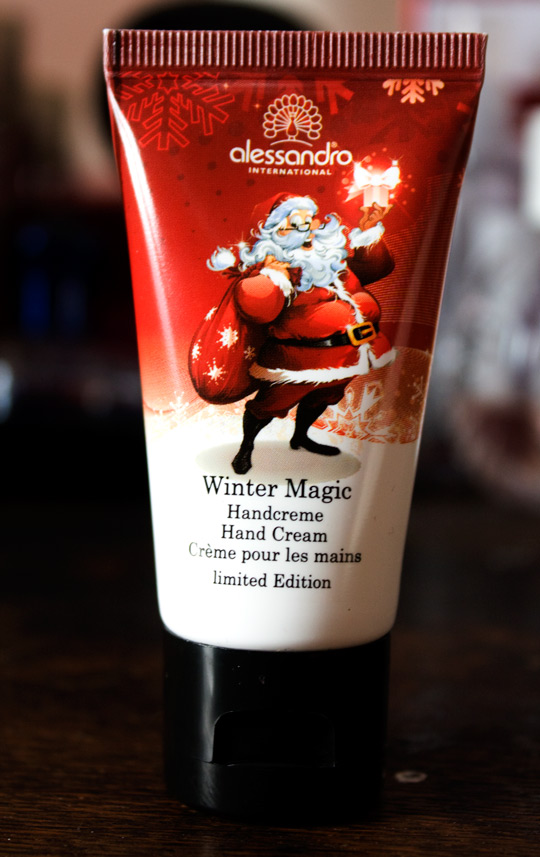 So landete ich beim surfen auf eBay bei alessandro und stolperte über Santa's 'winter magic' Handcreme und bezahlte superschnell & sicher mit PayPal. Sie duftet verführerisch nach Äpfeln und Zimt und pflegt mit Macadamiaöl, Aloe und und irgendeinem Traubenextrakt - so stand es geschrieben. Spontankäufe sind nicht immer die Besten, doch können sie sich durchaus zu Lieblingen entwickeln.